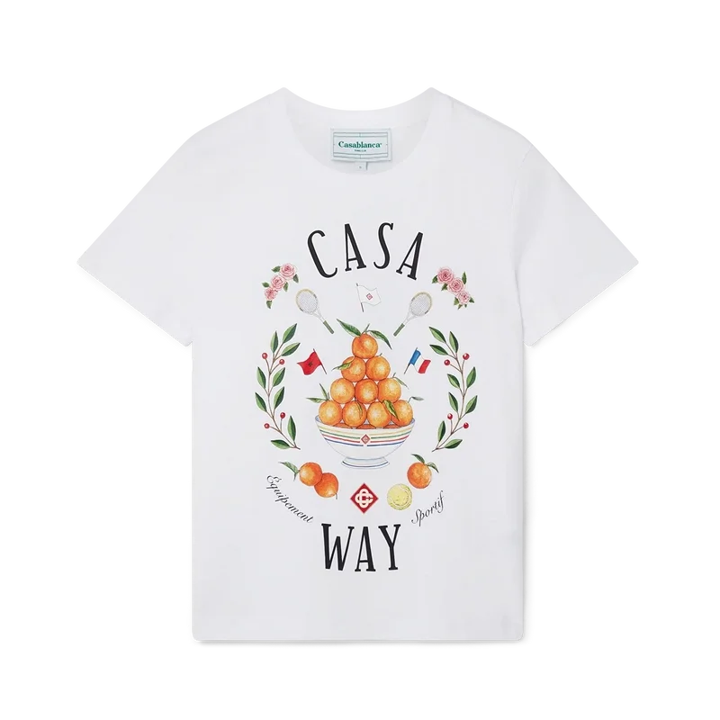 A T-shirt Casa Way apresenta um estampado da obra de arte emblemática da marca, reinterpretada para esta estação, incorporando elementos do ténis. Confecionada em 100% algodão orgânico e rematada com uma gola redonda clássica e uma etiqueta com a marca Casablanca.