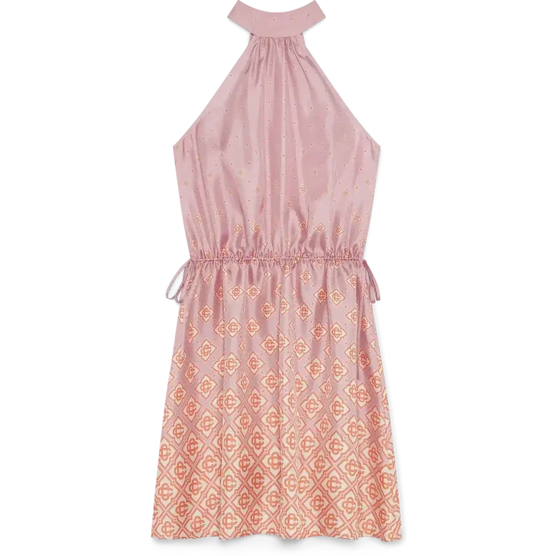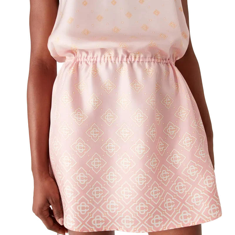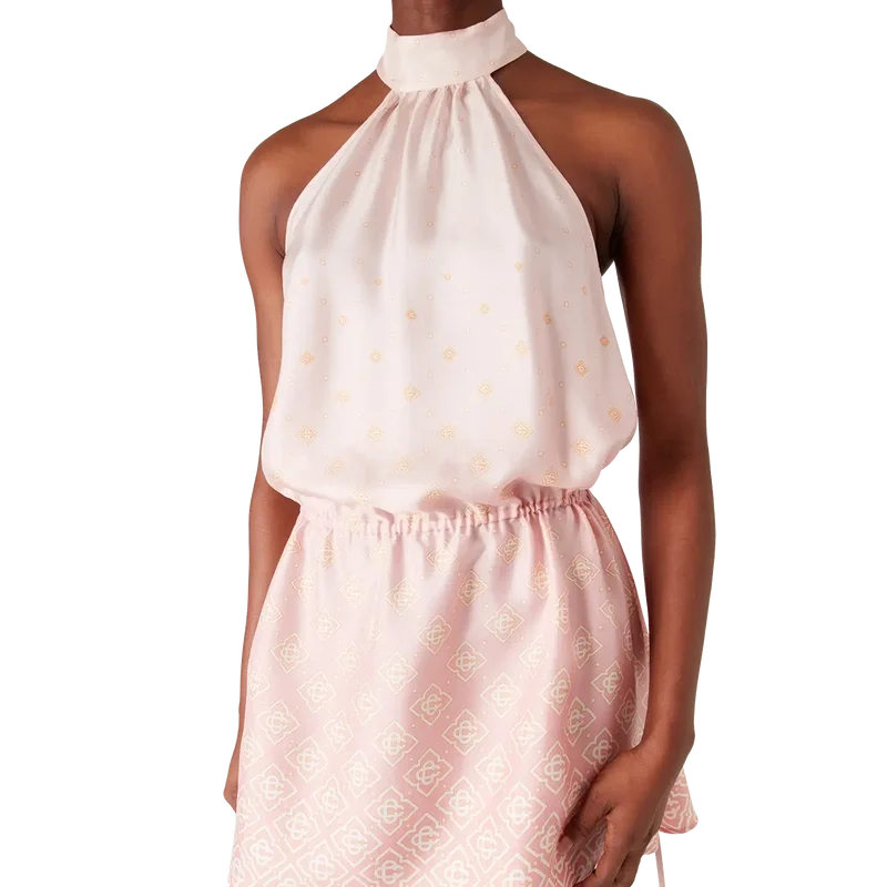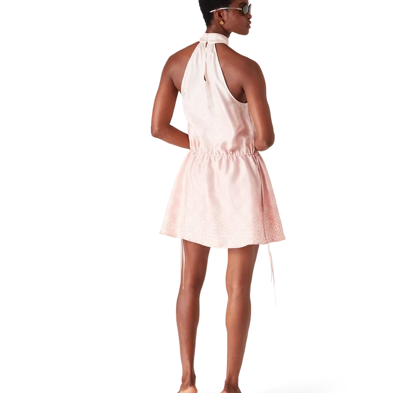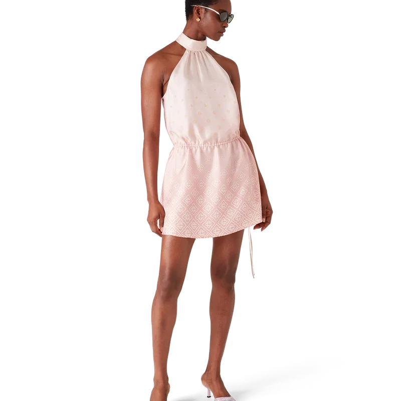 O vestido de seda Monogram Degrade é um modelo mini sem mangas que apresenta o icónico Monogram da marca em tons degradê. Completo com decote halter, fecho de correr invisível, cintura descaída com franzido solto e cordões de aperto nas laterais.
