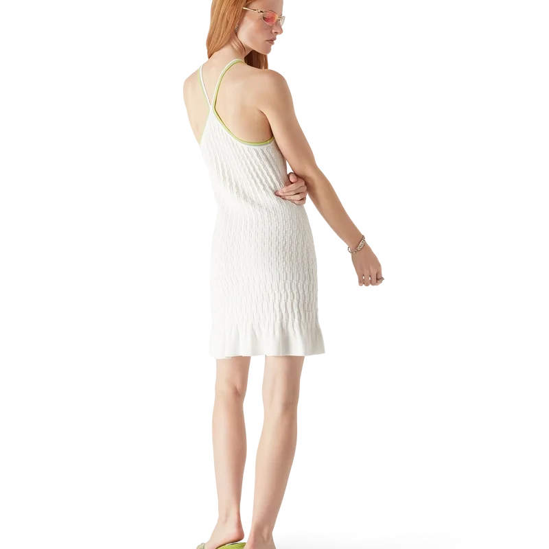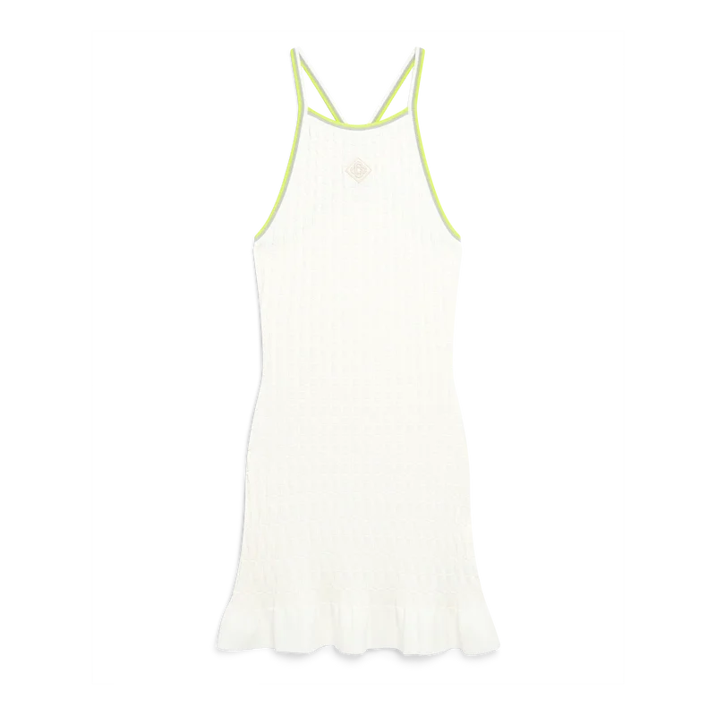 O mini-vestido de ténis com alças apresenta um design estampado com o logótipo em forma de diamante da marca no centro. Completado com detalhes de acabamentos em verde, bainha com folhos e uma silhueta clássica inspirada no ténis.